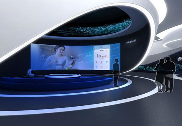 整個設計我們按照“創意+示范”的設計原則,整合現代先進多媒體展示手段,在形式上以故事化、影像化、全方位、沉浸式的空間設計手法整體打造國內示范性的智慧營銷體驗中心。